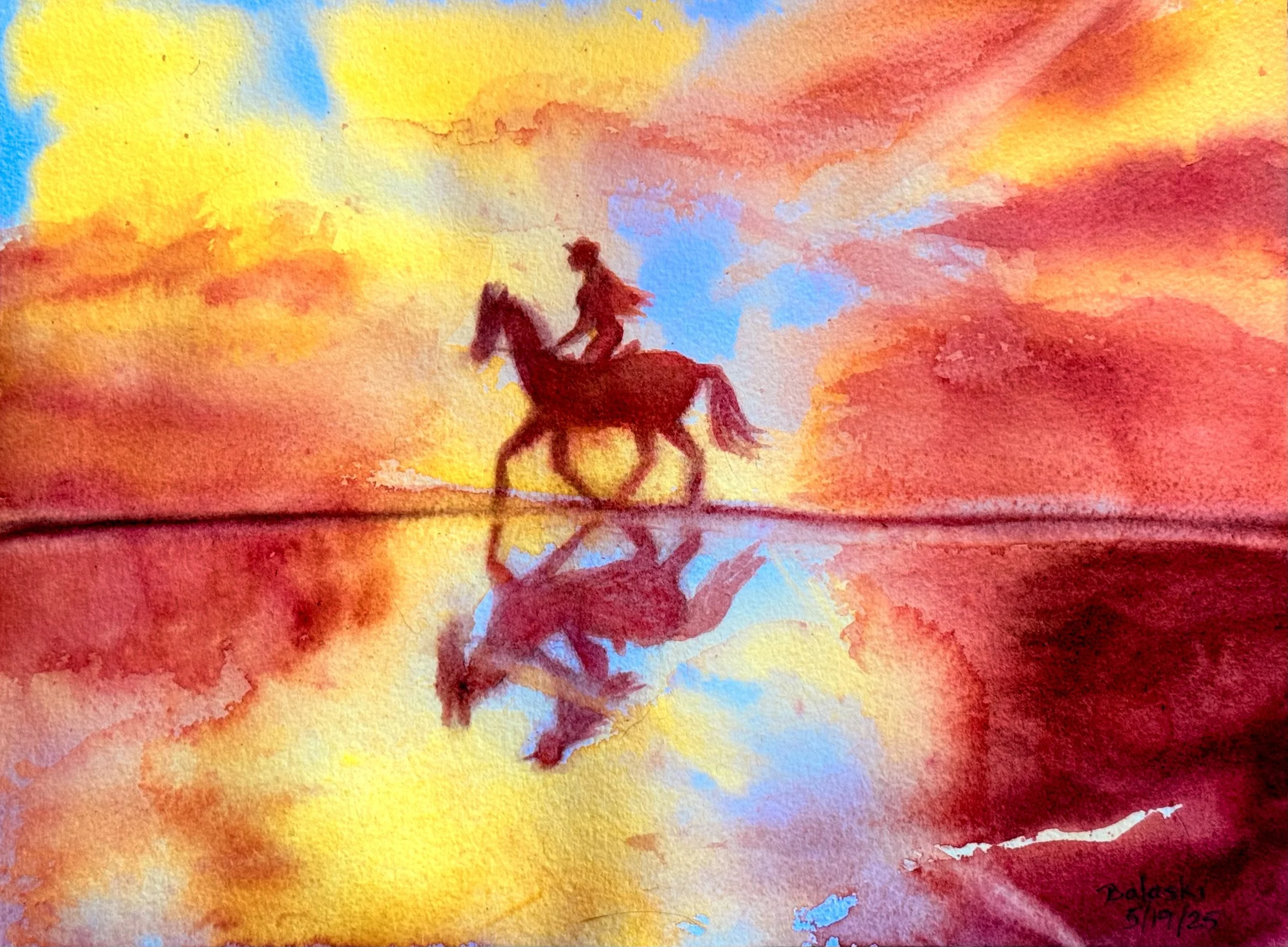 A Coastal Canter, 2025, Watercolor on Arches, 22.86x30.48cm, Belinda Balaski