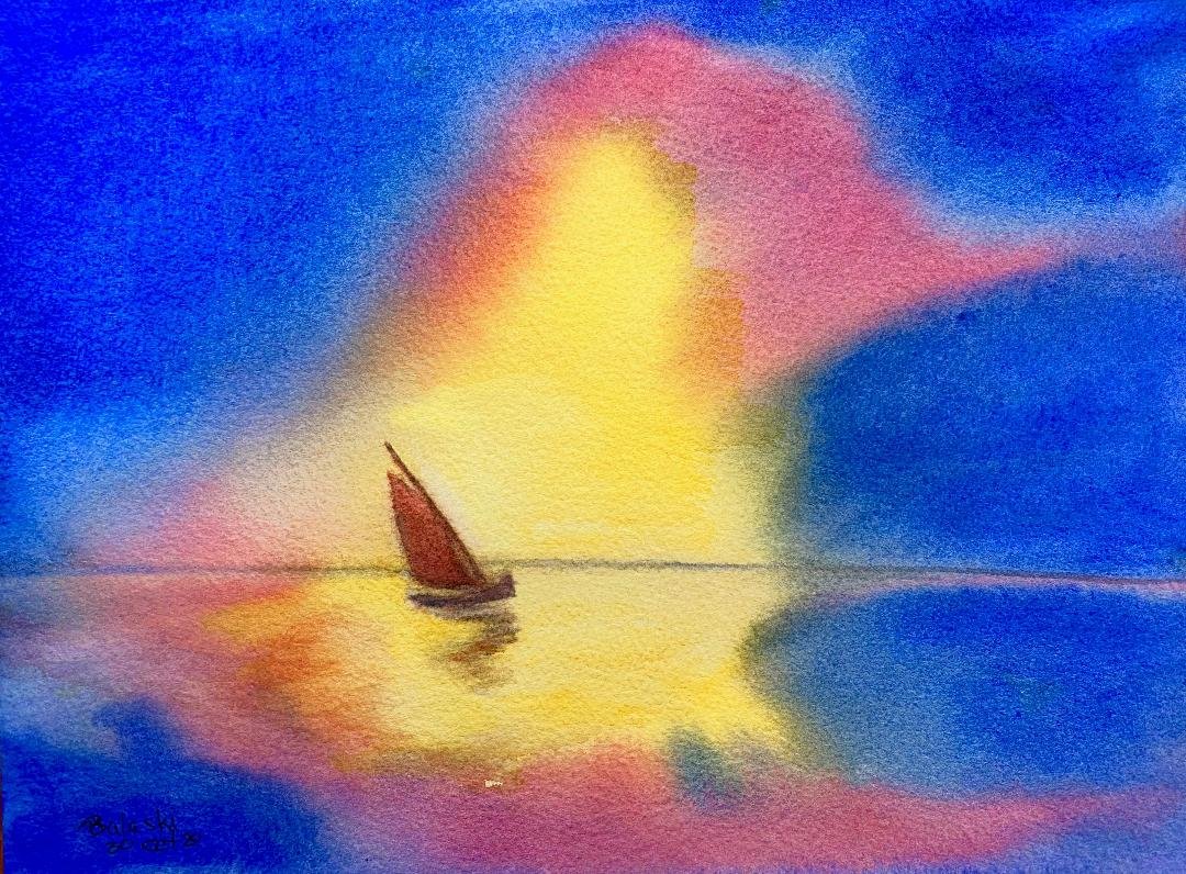 Sailin' the Zone, 2020, Watercolor on Arches, 22.86x30.48cm, Belinda Balaski