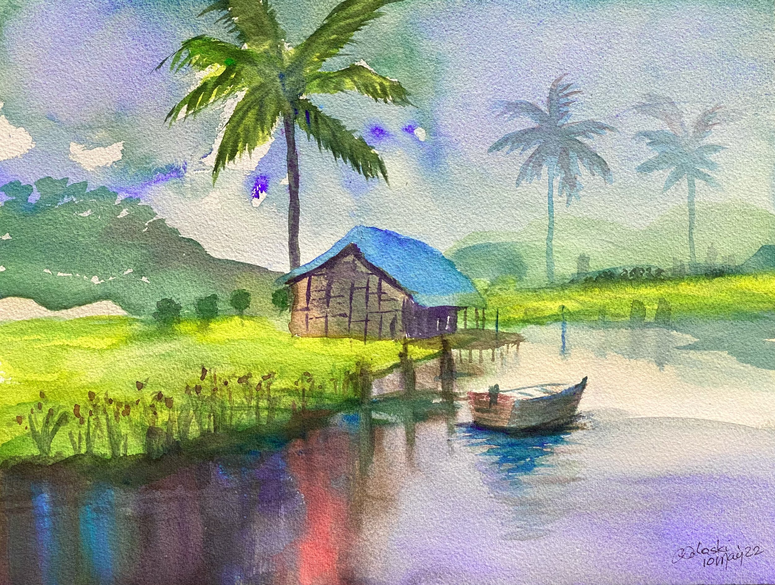 Hale Wa'apa, 2022, Watercolor on Arches, 22.86x30.48cm, Belinda Balaski