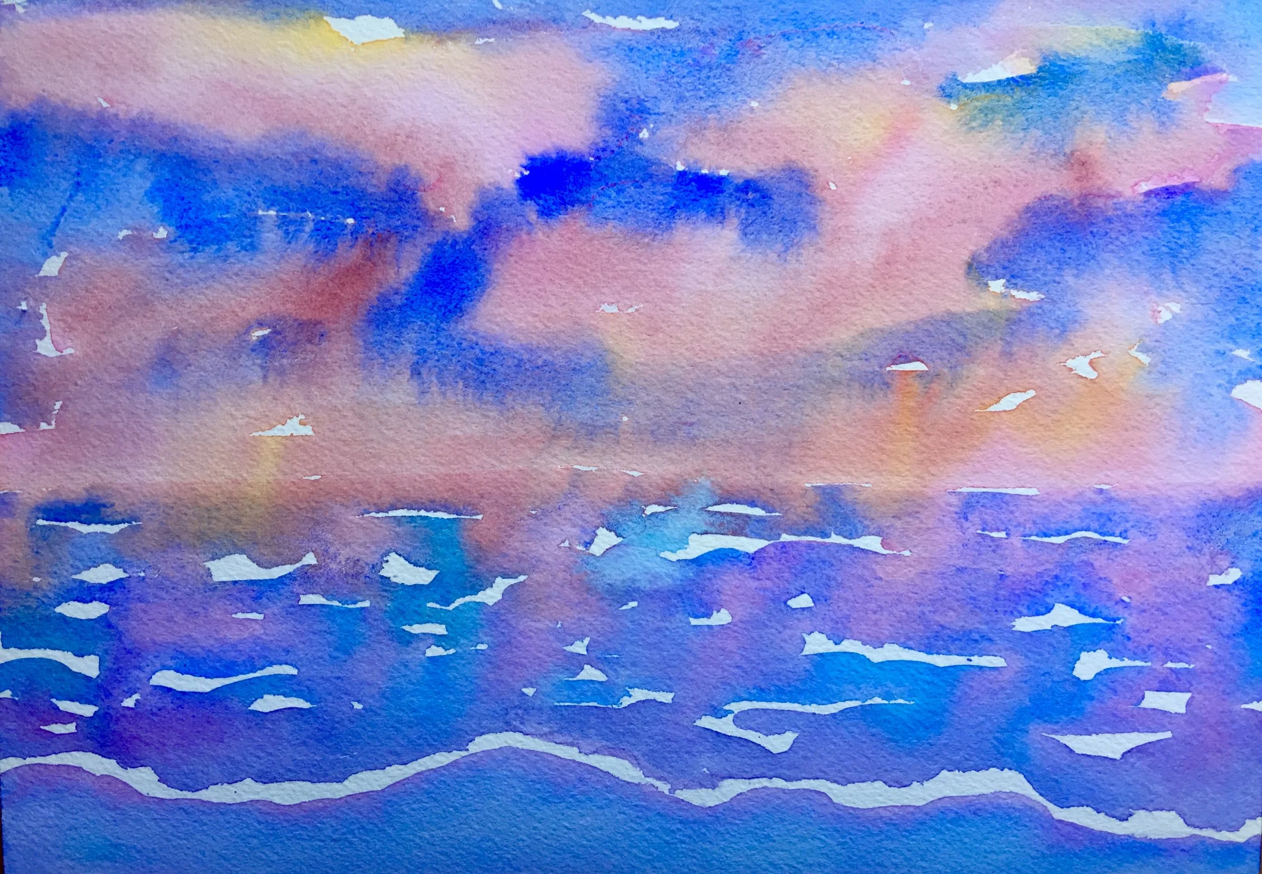 Sunset Surfin', 2020, Watercolor on Arches, 22.86x30.48cm, Belinda Balaski