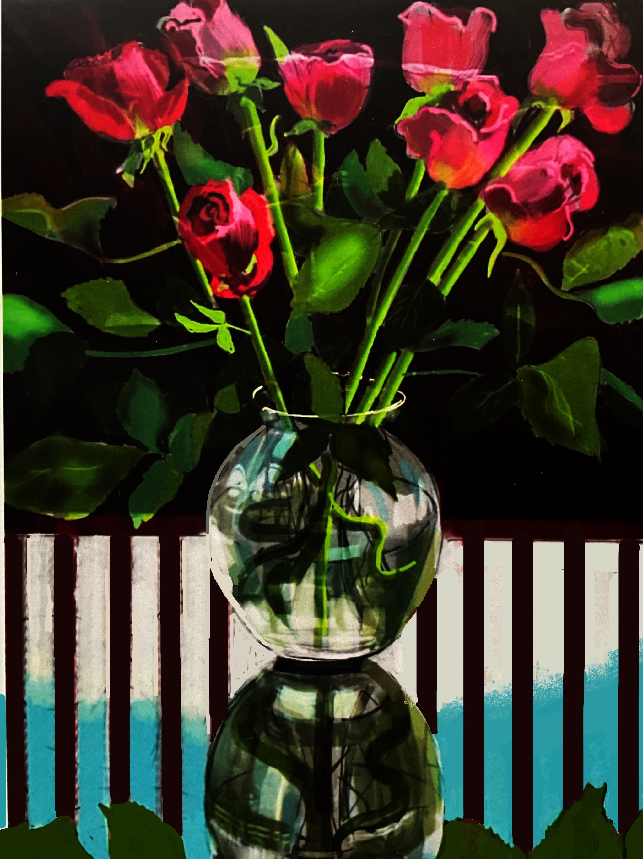 Roses on a Glass Table 2025 iPad 29.7x42cm