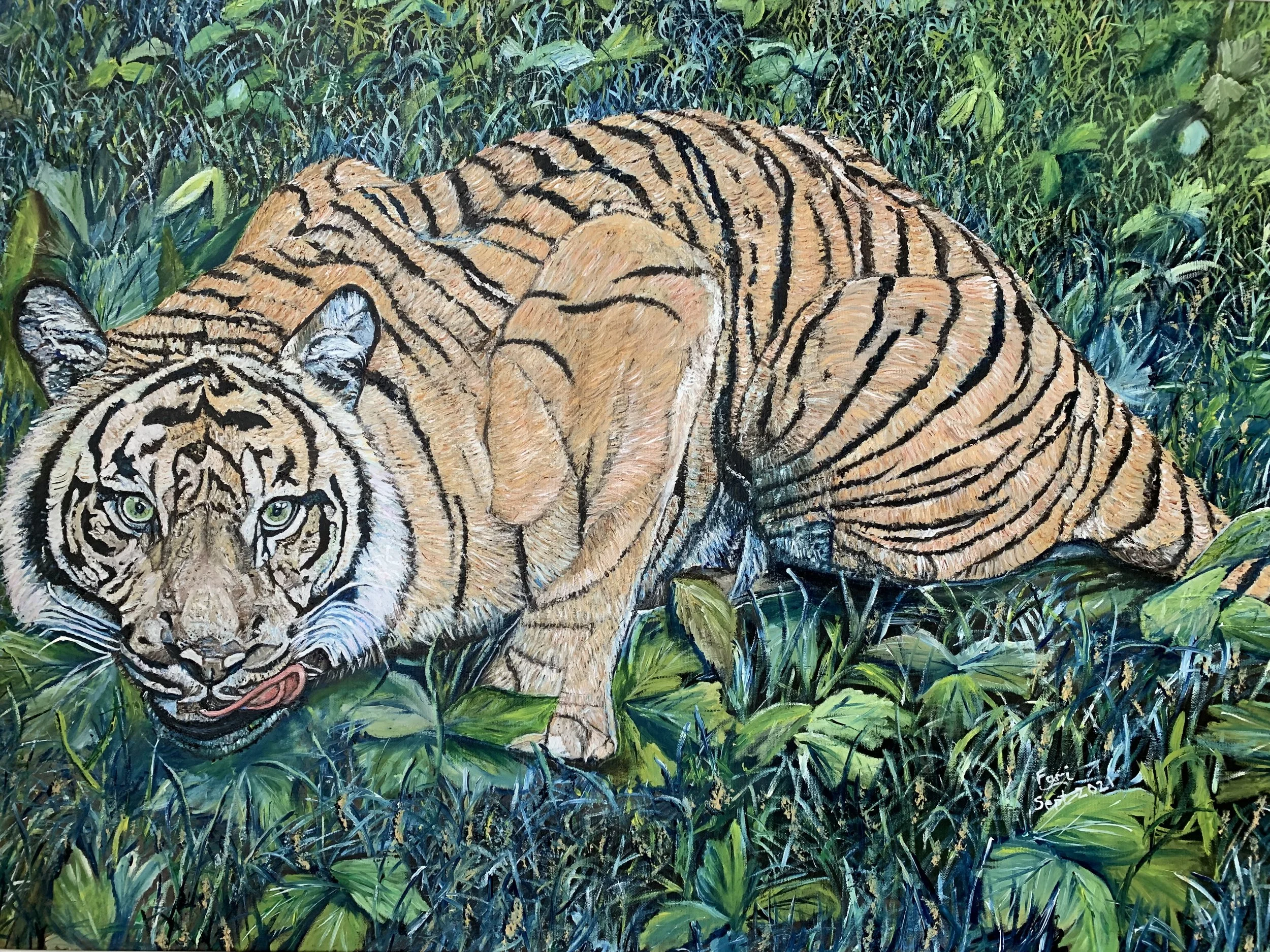 Tiger, 2021, Oils on canvas, 61X92 cms