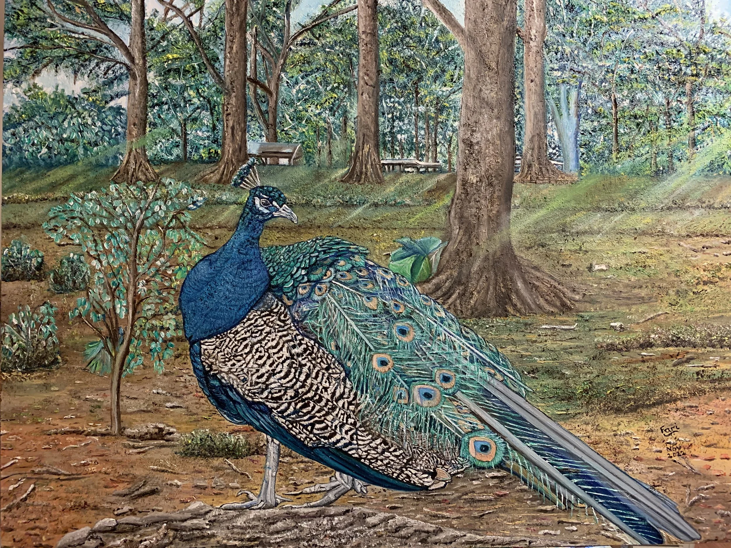 Peacock, 2022, Oils on canvas, 61X76 cms