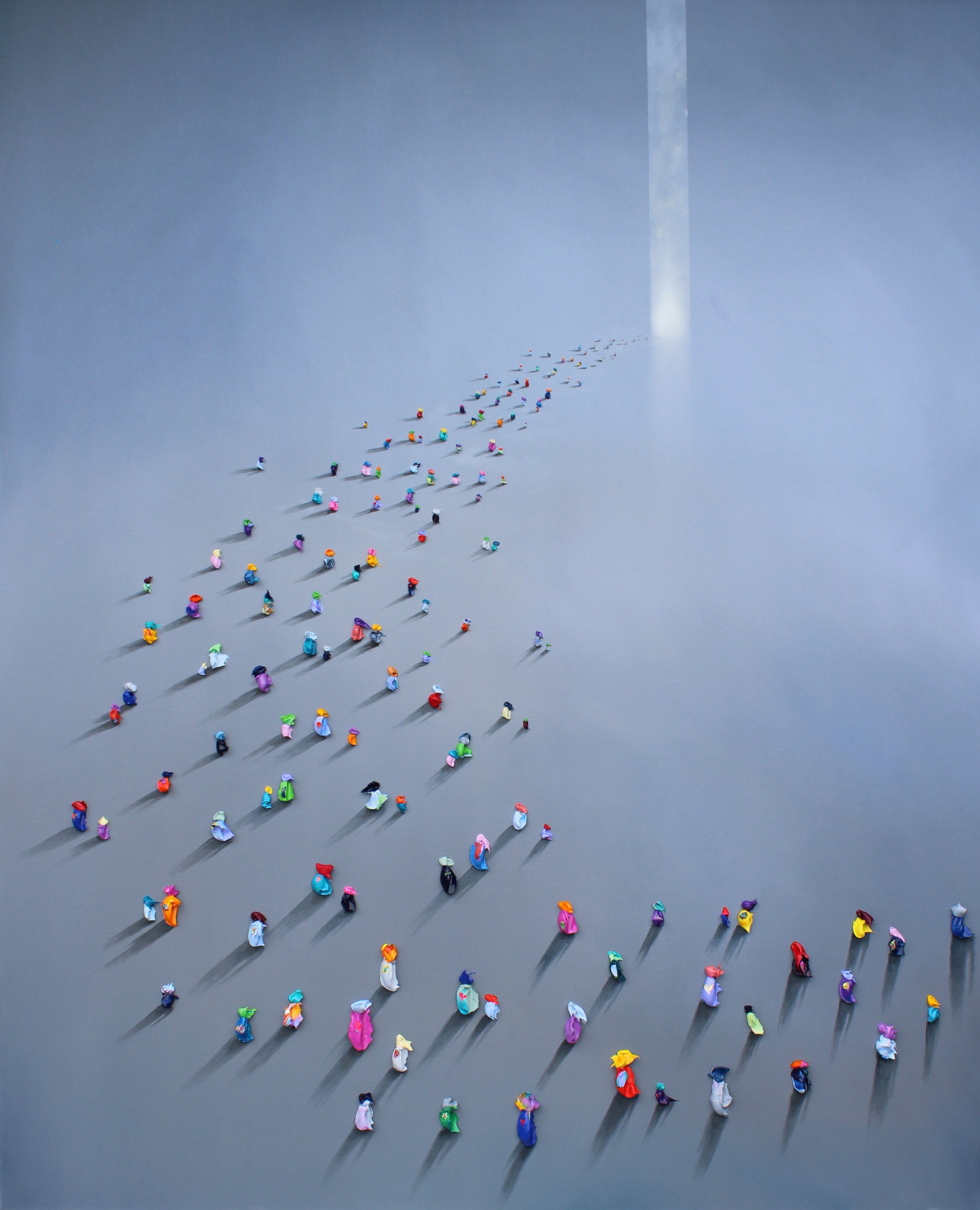 In my art, I represent that trajectory through my Series Walkers, They are searchers of beautiful emotions; they are travelers of the universe and the world. They are catchers of dreams; they are explorers of aspirations, searchers of unity and of freedom. Asking always who are we? Where are we going? What are we looking for? What do we want? Who do we love?