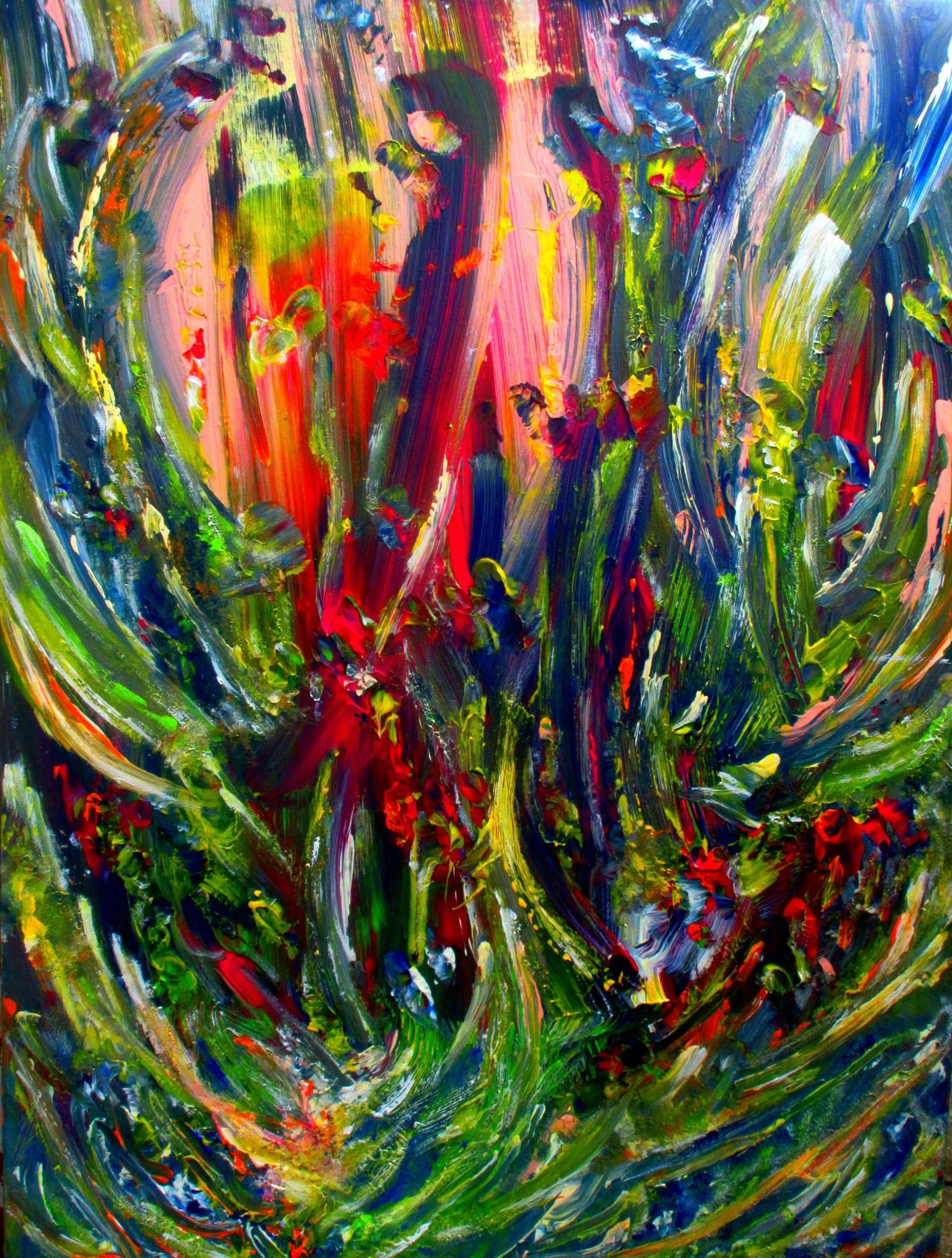 Painting and writing came to my rescue, both had been my dear hobbies since I was twelve years old, drawing and long letters which at the crucial time turned into poetry, so as to express the distress in the most concise way the feelings assailing me, by and by, bringing me back to life, after going back thanks to poetry, to the roots of my varied life already early marked by abandon and death. It took time which was not wasted. I started showing my paintings in rather big exhibits during which I gave my own Poetry readings, dramatized and accompanied by talented young musicians, inviting my guests into my inner world and the expression of my life’s experiences. I joined main poetry associations in Geneva and by and by was invited to exhibit here and there. Love also came to my rescue, a major theme in my poems, the relationship between men and women also apperaing in some of my paintings. I am now happy again in this new and quite different phase of my life and ready to meet it’s challenges. I also thank my parents for transmitting their love of art, music museums and litterature to me which I still cherish today and thus continue studying the old famous masters. While in Rome, I studied GIORGIO VASARY’s book XIV-XVI century, on the great Italian Renaissance masters, still today a reference book for the study of History of Art, the first methodolocial and biographical study ever done.