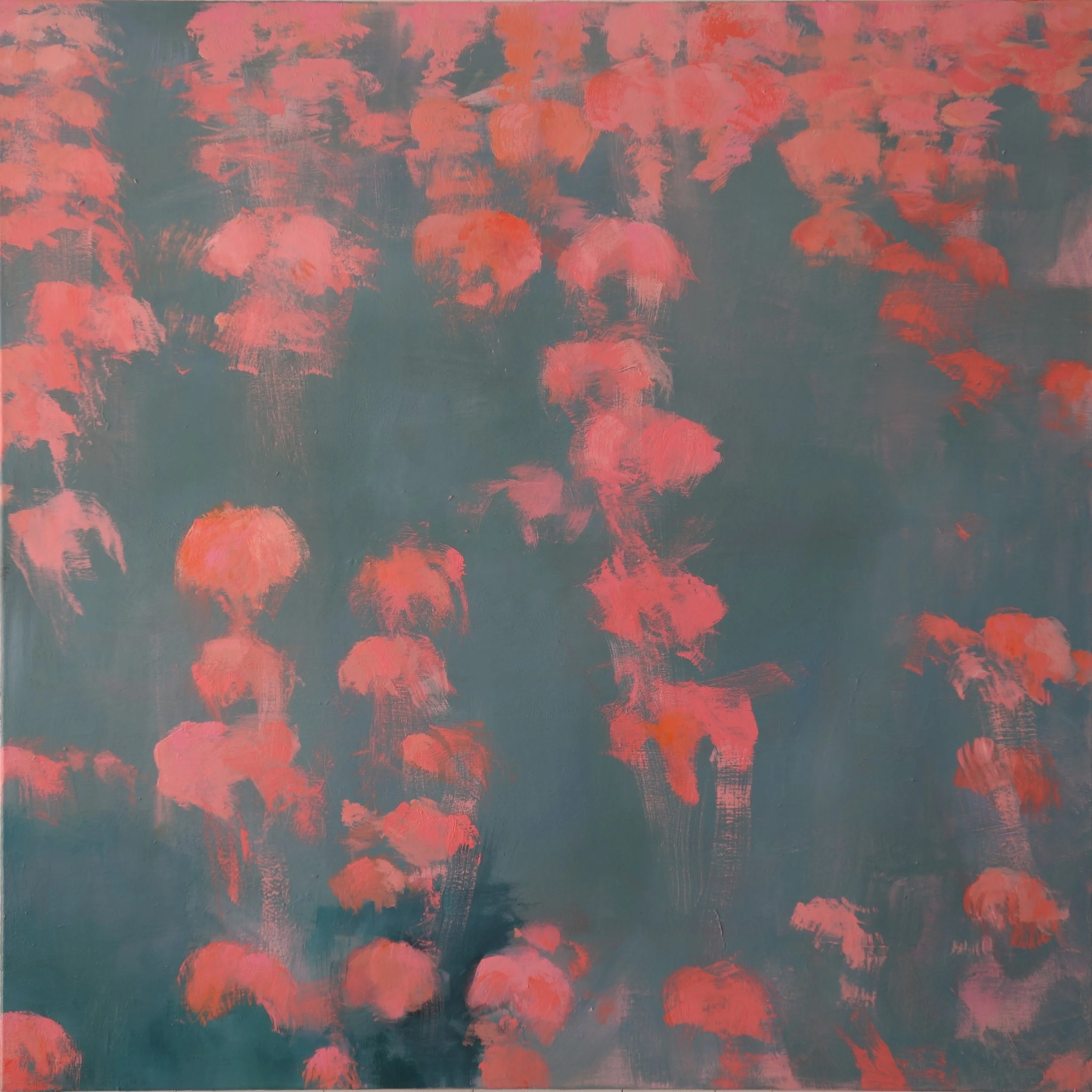 Pink Medusas in the ocean,2024.Acrylic on canvas, 120 x 120 cm