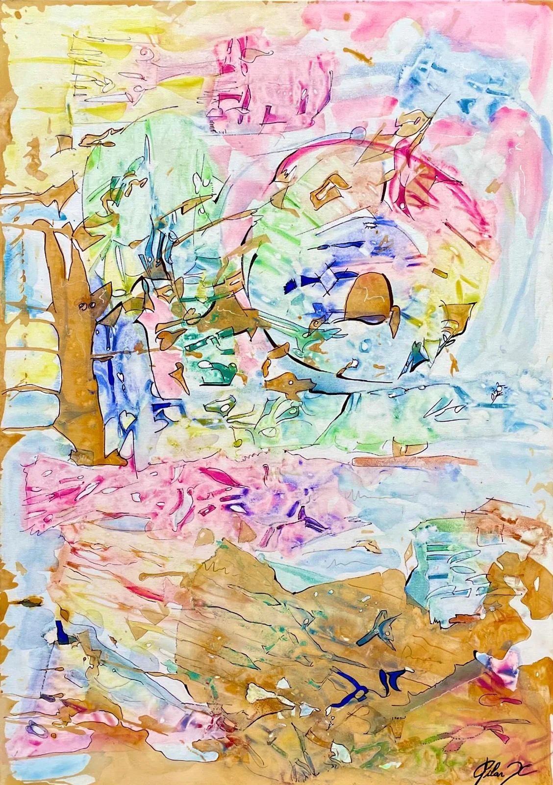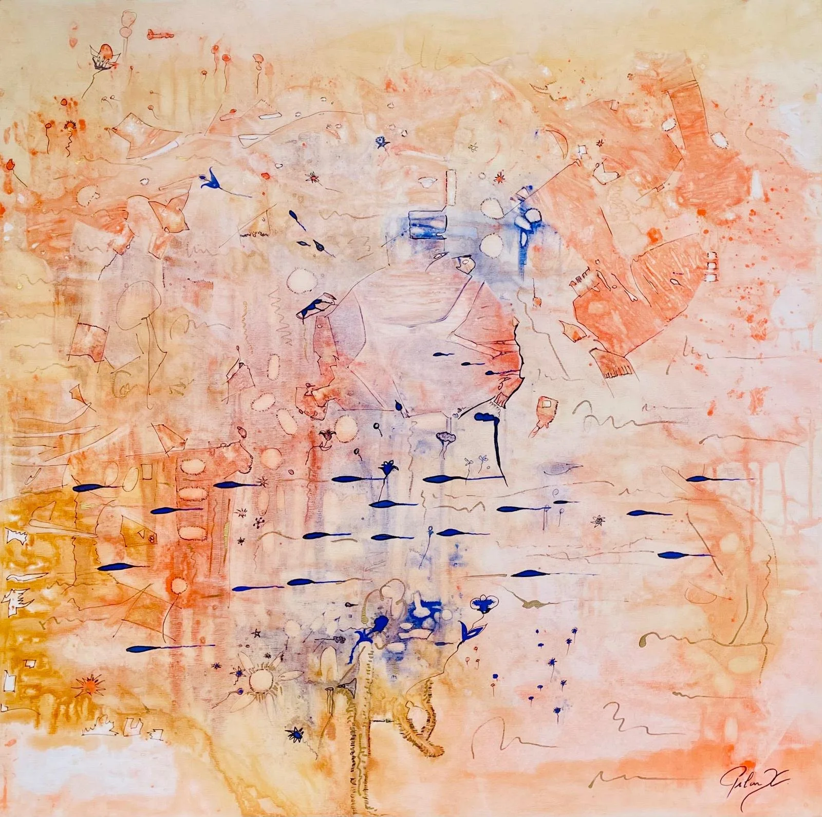 Pilar Xercavins Casas is an artist from Sant Cugat del Vallès (Barcelona, Spain) born in 1961. Her painting style is abstract and she uses a mixed technique. She went through different learning techniques; pencil, charcoal, oil, coloured chalks and engraving, until she ended up using natural pigments and created her own style.