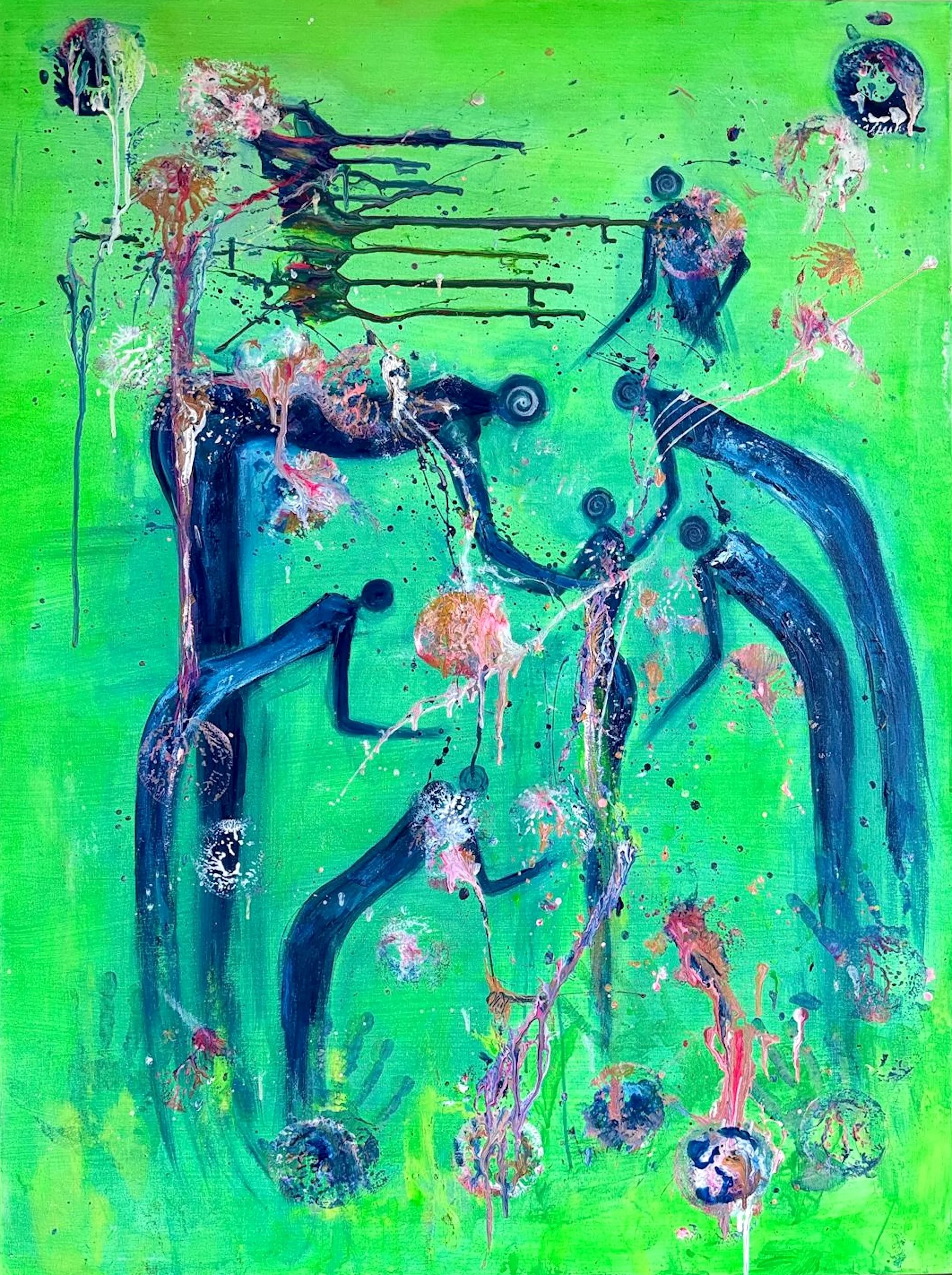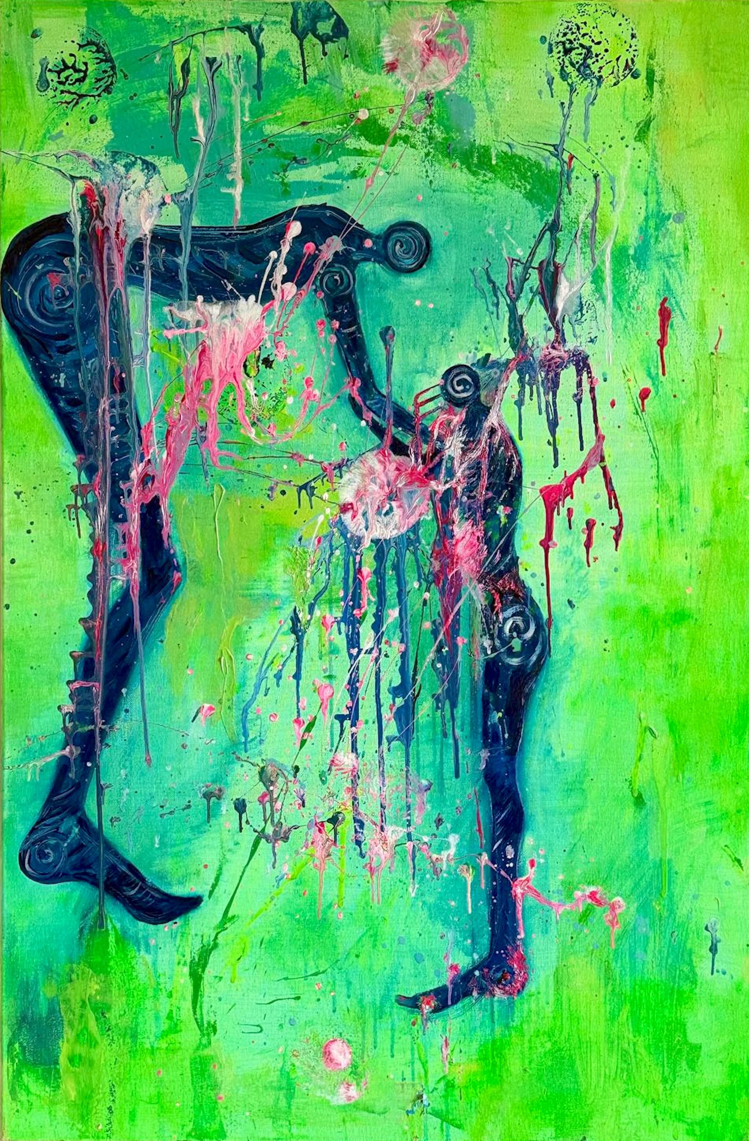 EVOLVING THROUGH MESS, 2023. Acrylic on canvas, 90 × 60 cm