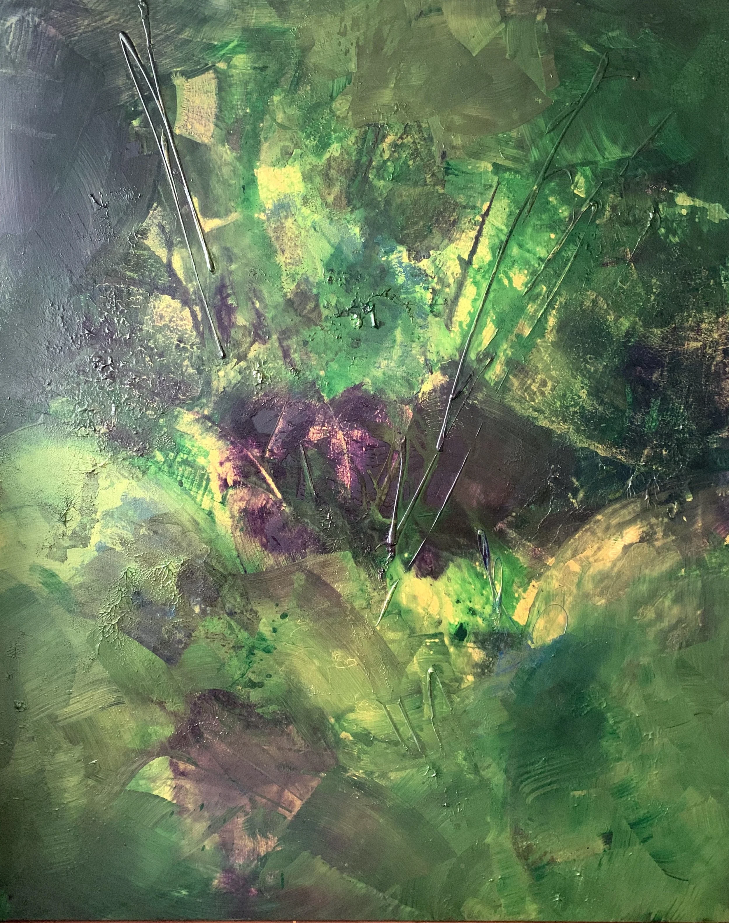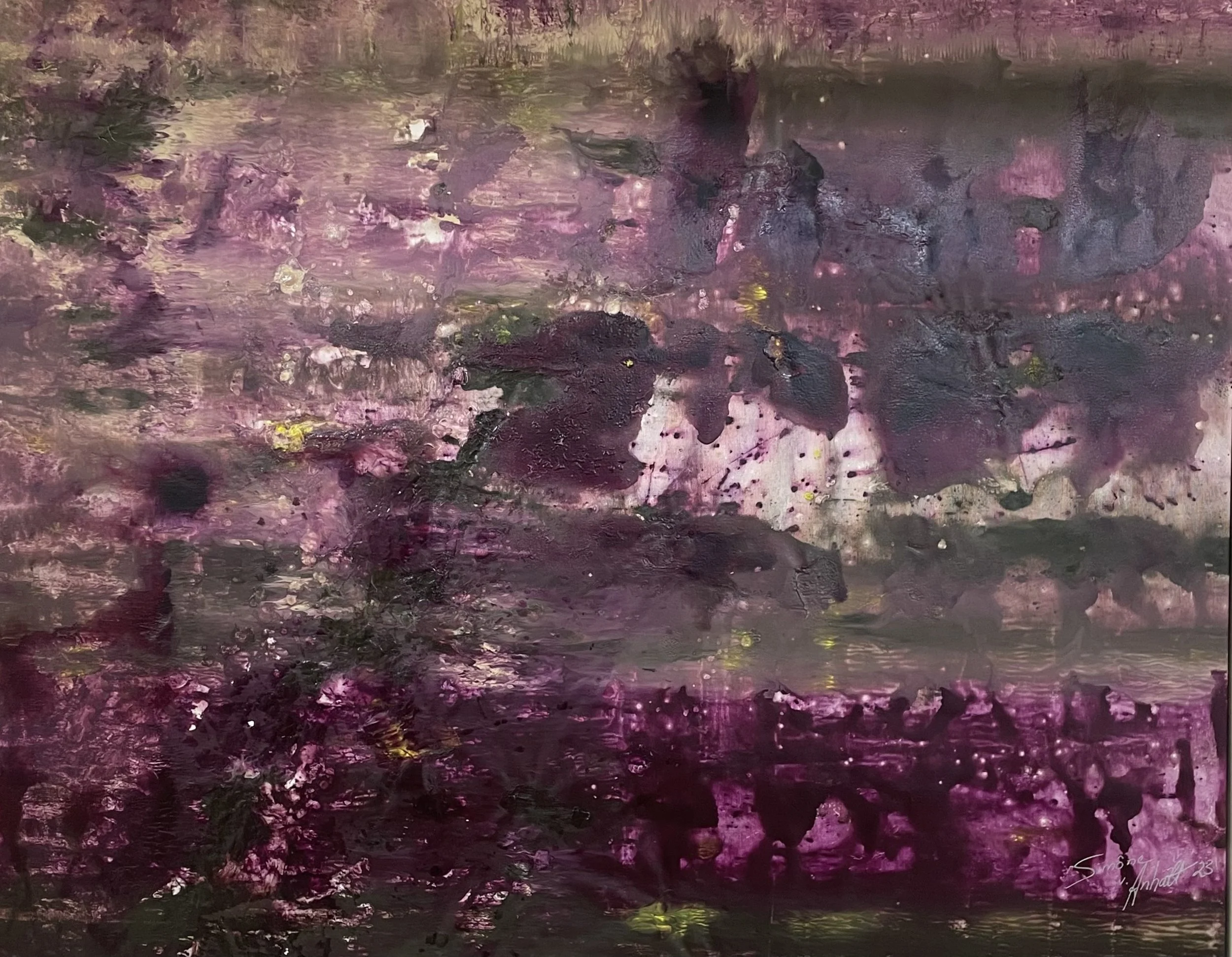 Von Anhalt prefers to work in utter solitude, neglecting outside forces to channel her own inner self onto the canvas. She employs acrylic mixed with pigments, gold, sponges, and palette knives to create these lush canvases. Her studio acts as her refuge, and, as a result, her paintings allow the viewer to take refuge in the way they capture peace and encourage subjective emotion.