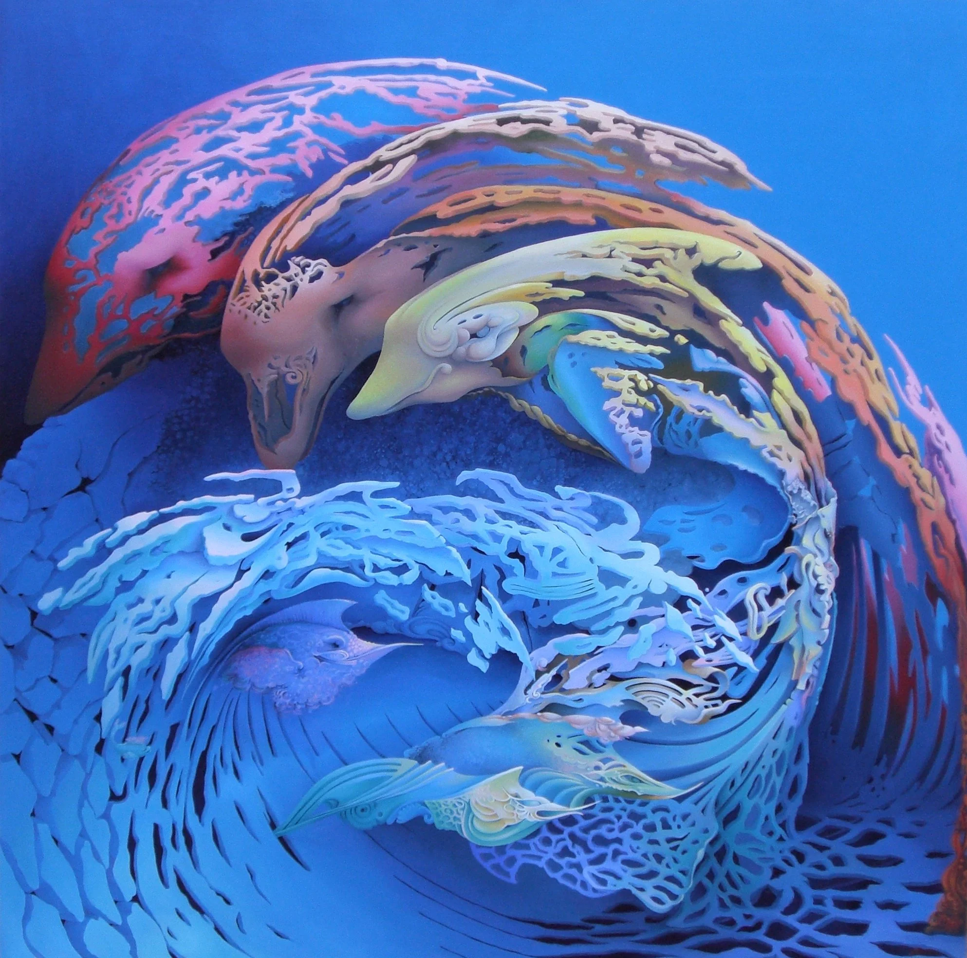 Tumbling and falling into the never-ending profound blues ahead... following the burning desire to be united with the rainbow-colored tunes carried by the wind.