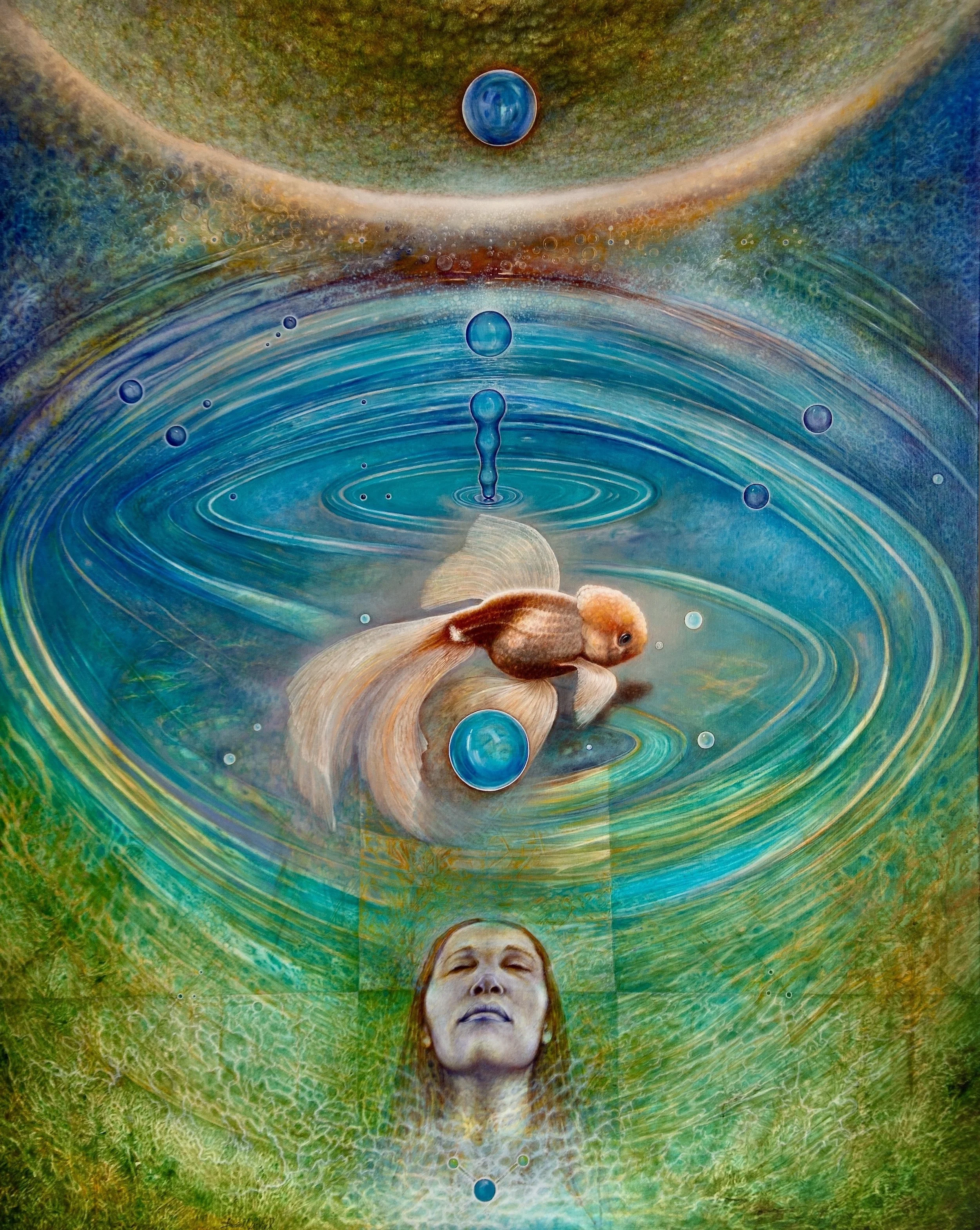 Mémoire d'eau, 2024, huile et ambre sur toile, 162 x 130 cm.
