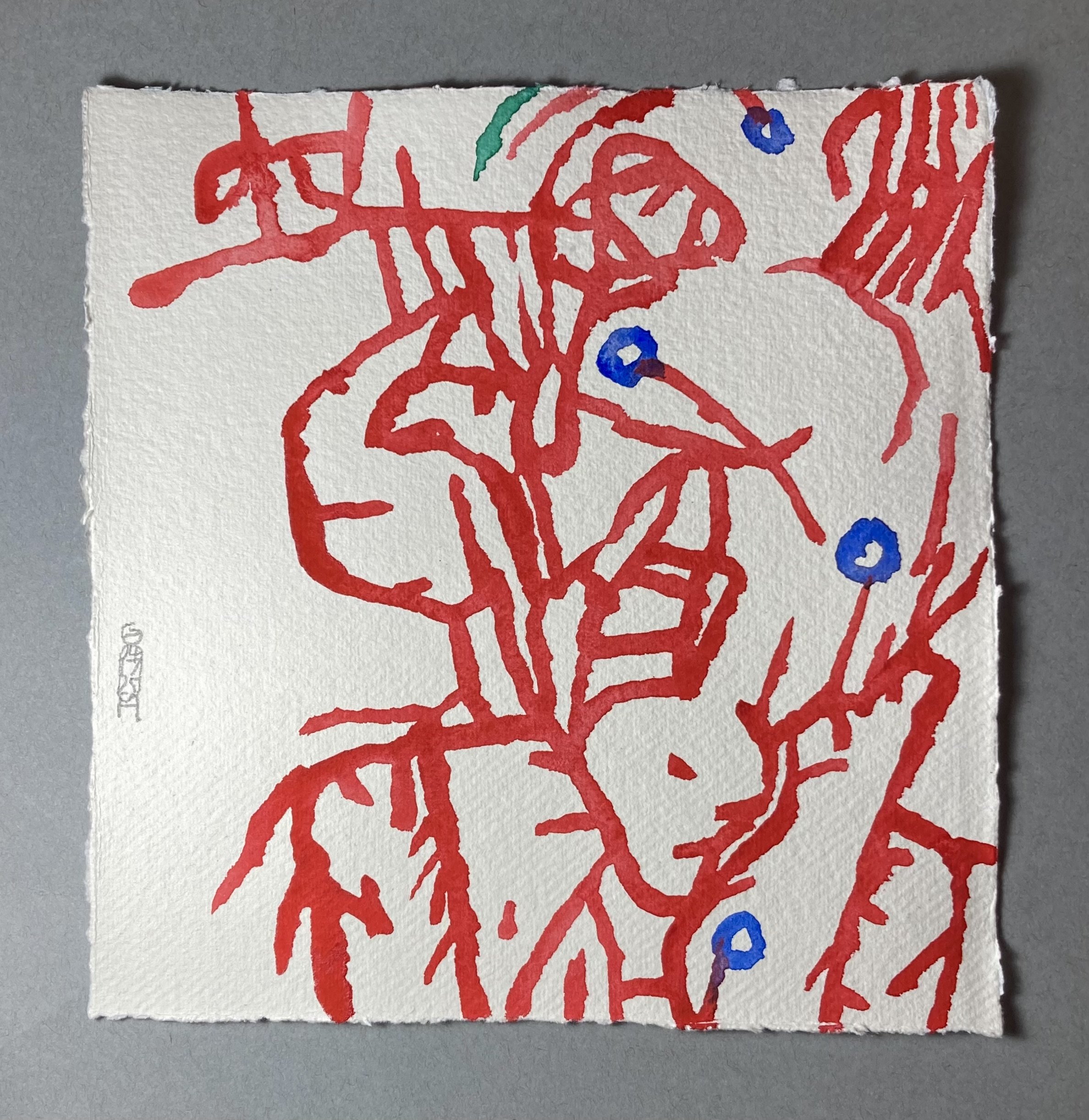 With the sun in his heart, 2025, Watercolor + gouache + pencil + ink, 21.5 x 21 cm