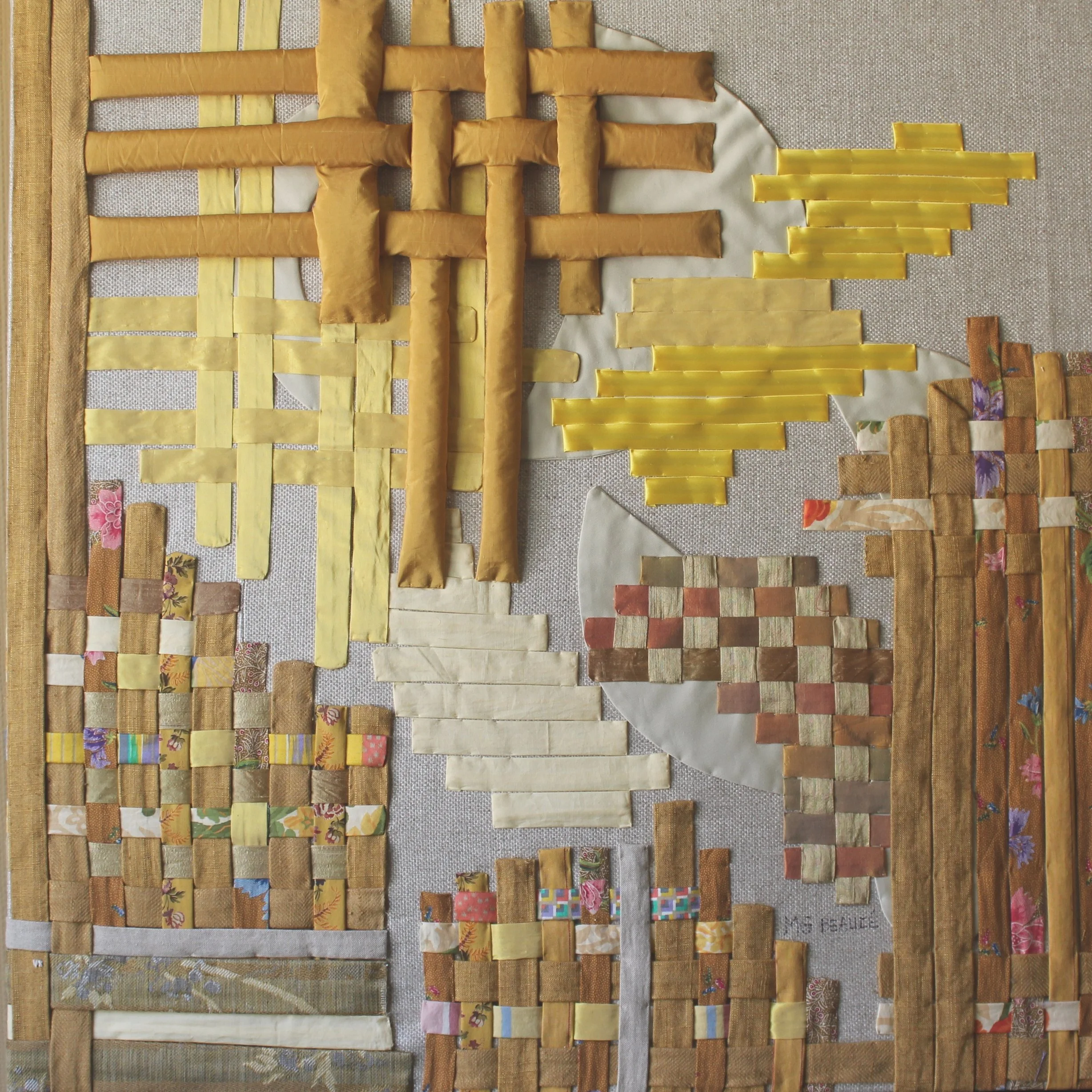 Marie-Ghislaine Beaucé, a French artist currently living in London, has been passionate about textile fibers since childhood; at 12 years old her ambition was to become a fashion designer. At the National School of Fine Arts in Nantes, she experimented weaving various materials such as hemp, 8 mm film reels, ribbons cut from fabrics and painted cardboard tubes.