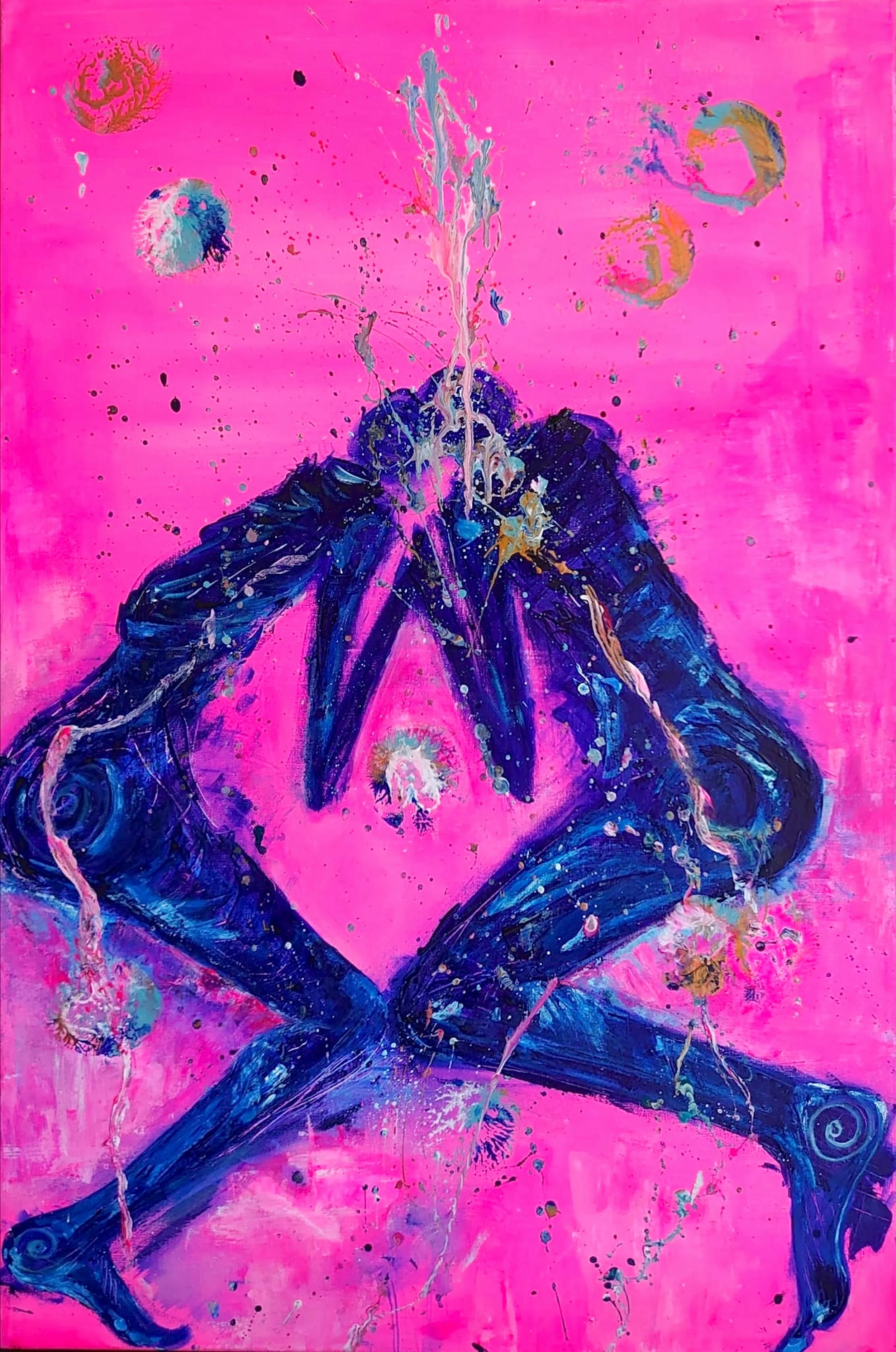 EVOLVING THROUGH MESS, 2023. Acrylic on canvas, 90 × 60 cm
