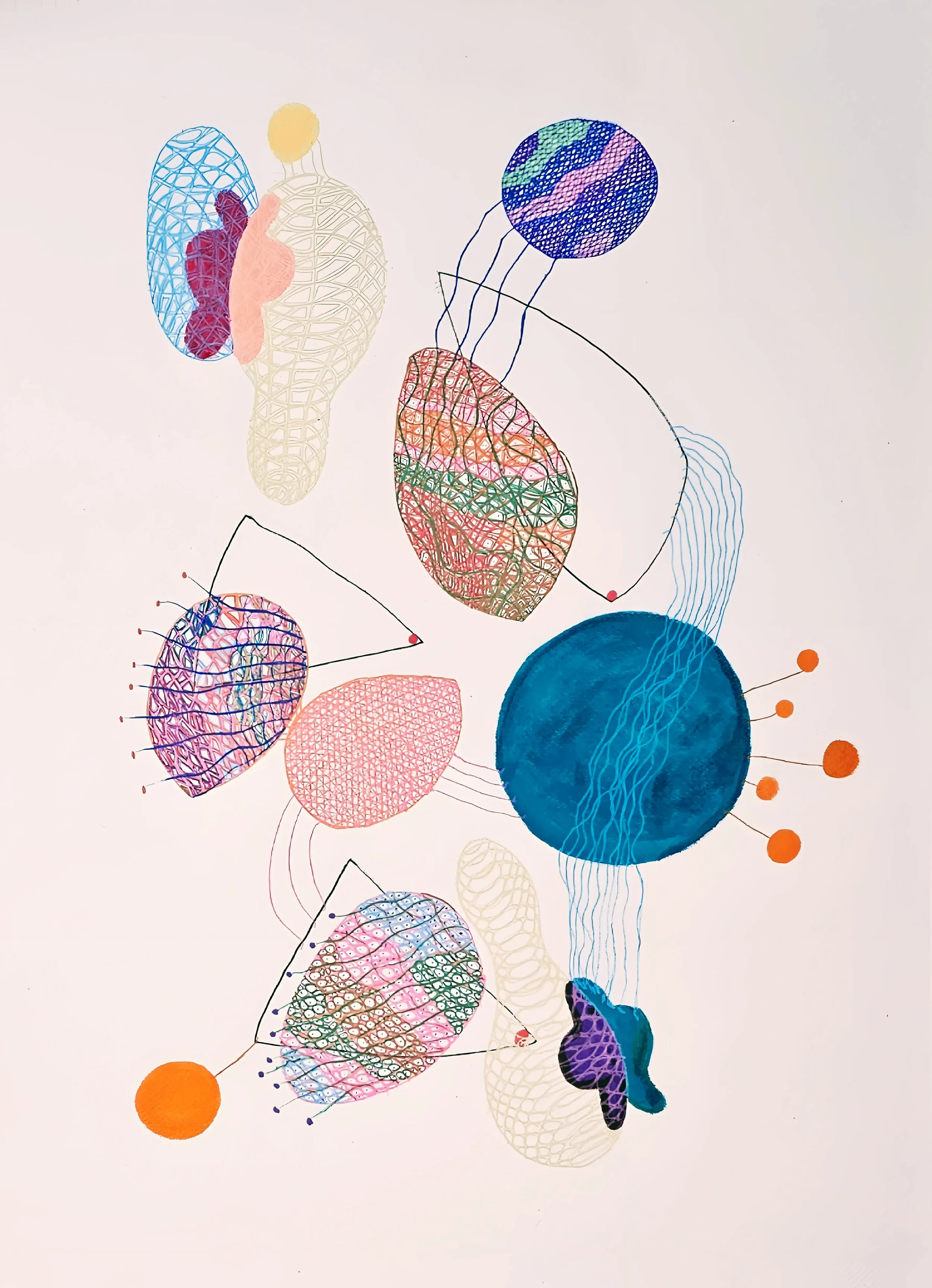 Hues of enlightened complexity,2024. Freehand mixedmedia drawing on acidfree 300lb watercolor paper.71.12 cm x 55.88cm