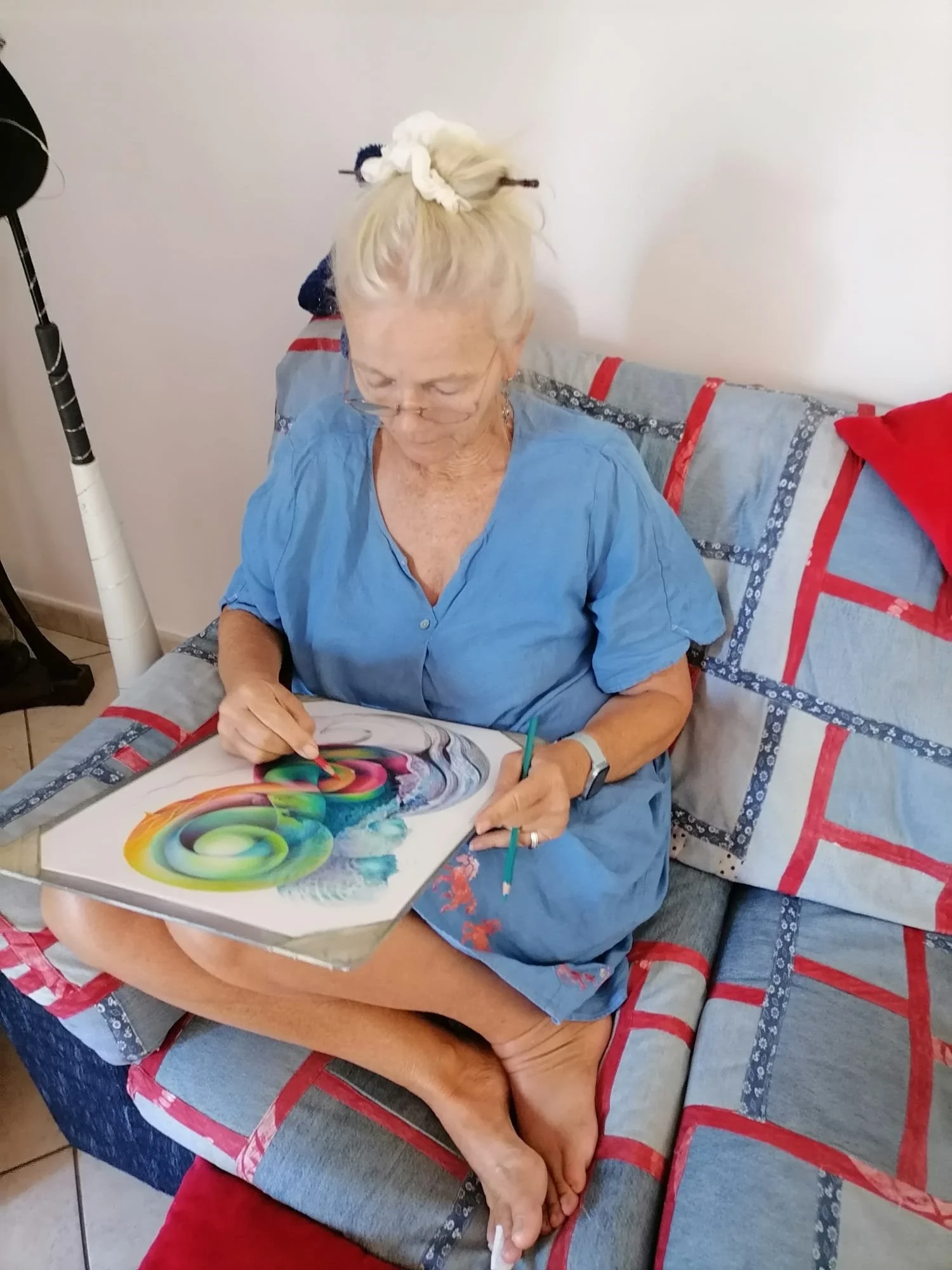 As an artist, a visual artist Symona Colina holds the brushes in a steady drumbeat to the canvas. Touching the canvas, as lovers do.